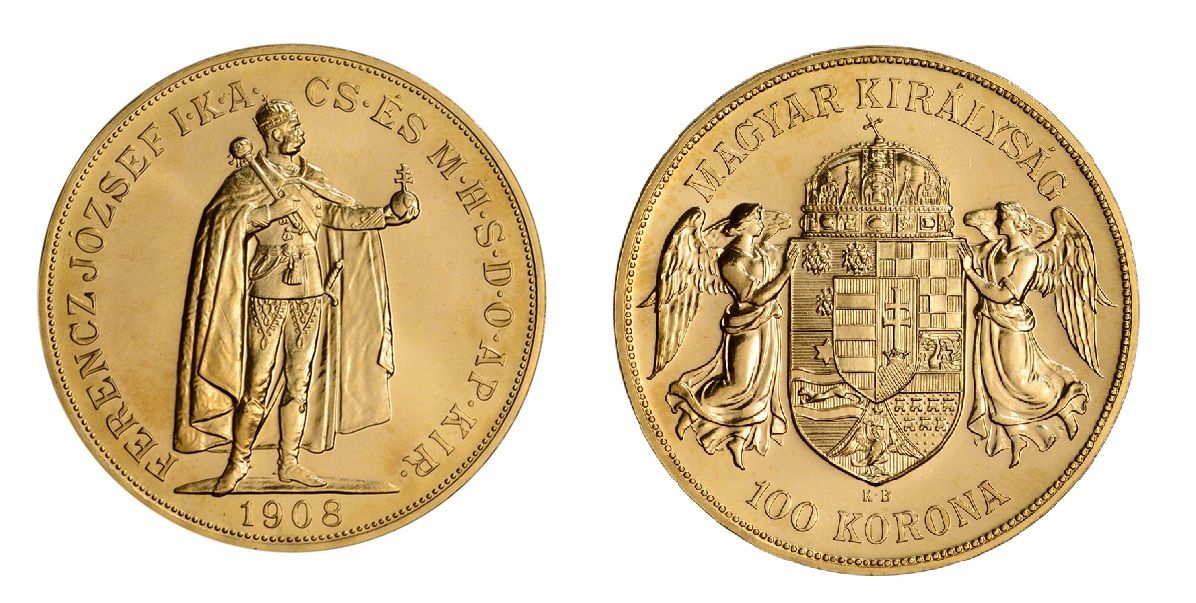 The coins in stock were struck as a restrike and are dated 1908. Restrikes are an official reproduction of a coin that once was minted for circulation, minted at the Hungarian Mint. They are popular ways to buy gold as they have very low premiums.