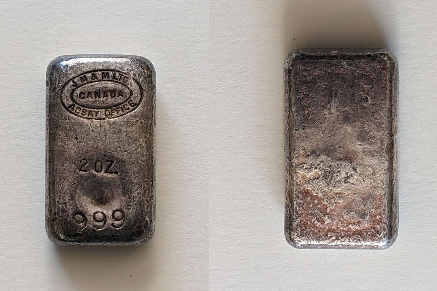 Johnson Matthey & Mallory Canada 2 troy oz silver poured ingot, early 1970's, less than 50 produced.